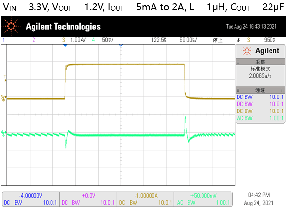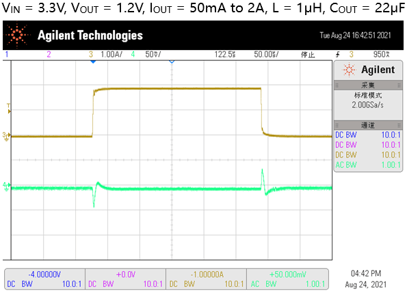 圖4 SGM61022 5mA-2A及50mA-2A負(fù)載瞬態(tài)響應(yīng)波形