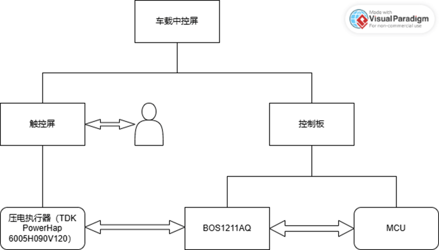 由于車載中控屏的使用場景上的要求,通過增加觸覺反饋可以提升用戶體驗(yàn),在手機(jī)和平板上一般使用線性馬達(dá)LRA來實(shí)現(xiàn),但是其反饋時間和使用體驗(yàn)上可能無法滿足車載的要求。Boreas BOS1211是一款壓電驅(qū)動IC,配合壓電執(zhí)行器來實(shí)現(xiàn)觸覺反饋是車載中控屏上的理想解決方案。通過在觸控屏下方放置壓電執(zhí)行器,由于正壓電效應(yīng)和逆壓電效應(yīng),用戶在按下觸控屏上虛擬按鍵后會得到來自屏幕的振動反饋。
