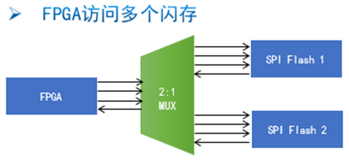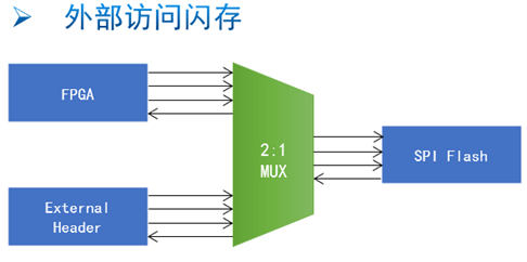 通過模擬開關(guān)/多路復用器,允許用戶通過FPGA和外部接口等多種方式訪問閃存。同時,F(xiàn)PGA通過多路復用器,也可以擴展訪問多個外部存儲器。由于模擬開關(guān)/多路復用器本身具有雙向?qū)üδ?,因此可以同時應對以上兩種應用。