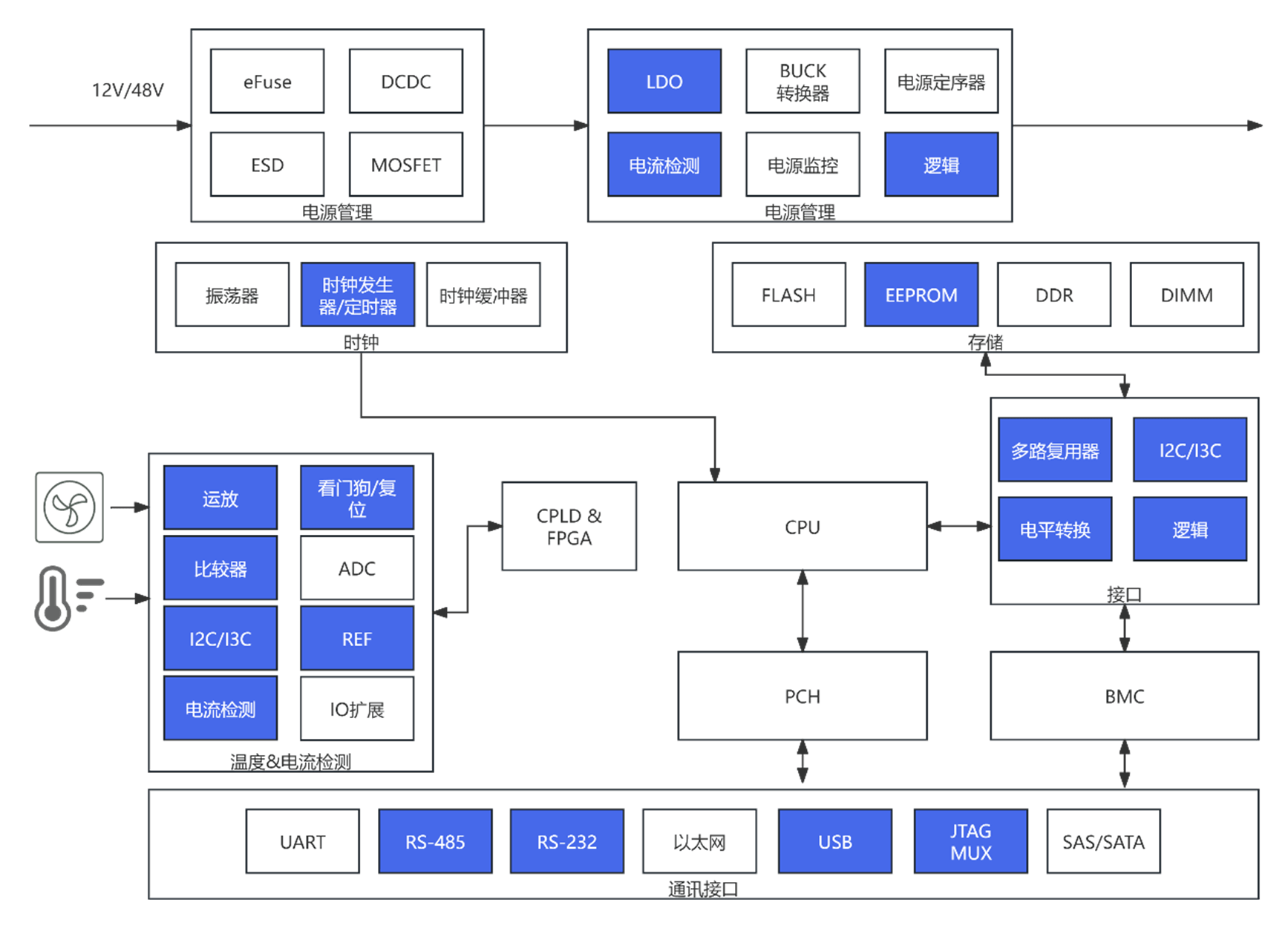 模擬開關(guān)/多路復用器在服務器中可應用于總線擴展、傳感器信號選通等應用場景,例如: