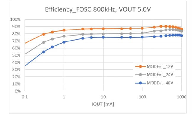 • 轉(zhuǎn)換效率高,輸出穩(wěn)定,開關(guān)頻率為800kHz。