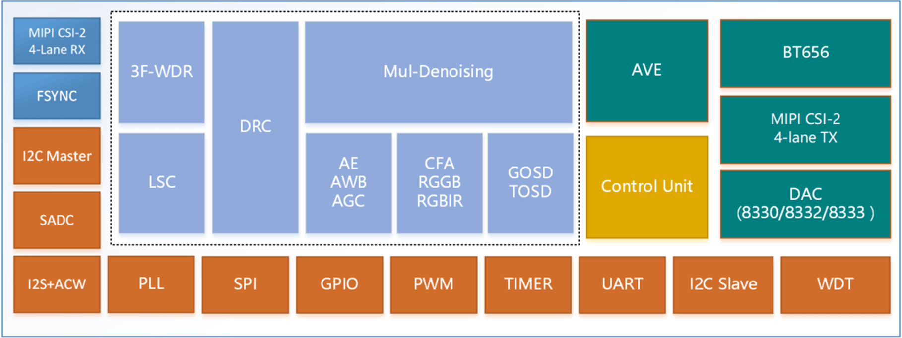 FH8333 是一款高性能低功耗 3M 車載前裝圖像處理芯片,支持 RGGB/RGB-IR Bayer 格式輸入;支持 3 幀合成 HDR,最大動態(tài)范圍可達(dá) 120dB;內(nèi)置多級去噪處理模塊,具有優(yōu)秀的噪聲控制能力;視頻處理能力可達(dá) 1920×1536@30fps;支持 HDAnalog、MIPI 和 BT656 輸出。適合倒車、環(huán)視、駕駛員監(jiān)測、座艙監(jiān)測和流媒體攝像頭等車載攝像頭應(yīng)用。