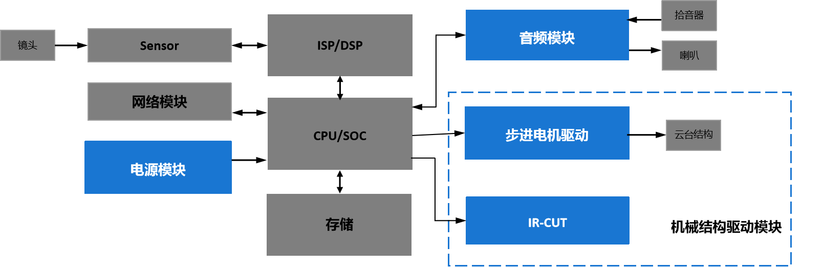 | 音頻模塊 | IR-CUT | 步進電機驅(qū)動 | 電源模塊 |