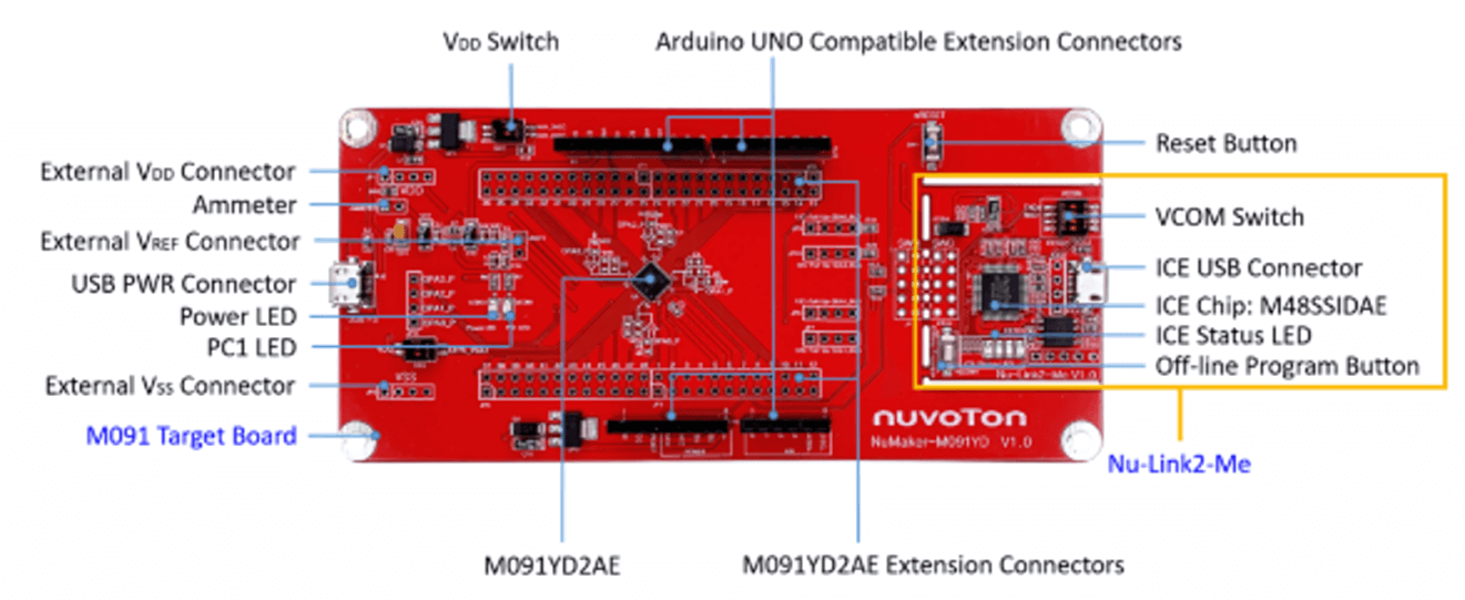 基于M091系列的NuMaker-M091YD開發(fā)板和Nu-Link除錯器為產(chǎn)品評估與開發(fā)的利器。同時支持第三方提供的IDE,如 Keil MDK、IAR EWARM和新唐科技自主研發(fā)NuEclipse IDE,為開發(fā)人員提供更多選擇和便利性。
