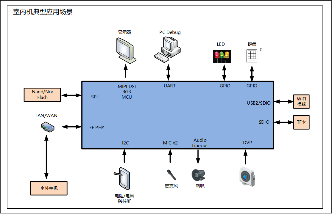 MC3310是一款專業(yè) ISP芯片,搭載RISC 雙核,最高支持1.0G;支持2MP DVP視頻輸入,同時(shí)支持高性能H265&H264視頻解碼,解碼最高支持1080p@30fps;軟件實(shí)現(xiàn)多協(xié)議音頻編解碼,支持G.711、G.726;支持MIPI /RGB 高清顯示輸出接口,支持USB/Ethernet等豐富接口;內(nèi)置EPHY網(wǎng)絡(luò)接口;在SDK方面基于Linux 4.9的開發(fā)包,并提供多種協(xié)議的音頻編解碼庫;
