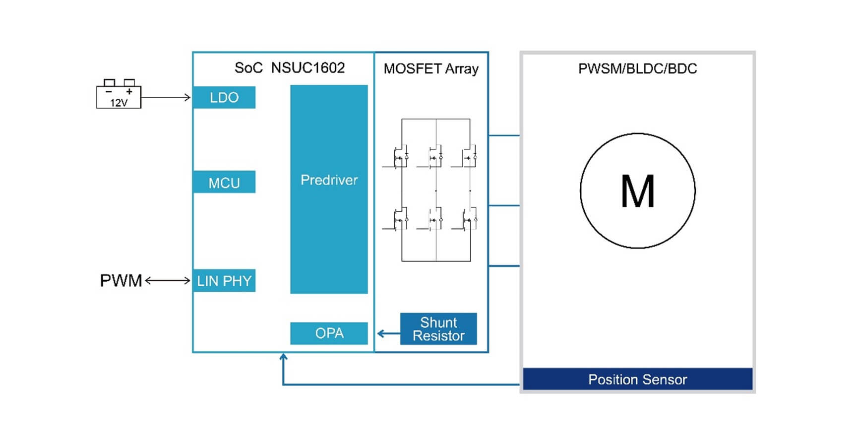 作為國(guó)內(nèi)汽車芯片供應(yīng)領(lǐng)域的佼佼者,納芯微繼 2023 年初在國(guó)內(nèi)率先推出車用小電機(jī)驅(qū)動(dòng) SoC NSUC1610 之后,于近期正式向市場(chǎng)推出具備高集成度的嵌入式電機(jī)控制 IC NSUC1602。相較于集成了 LIN 和 MOS 功率級(jí)的單芯片 NSUC1610,NSUC1602 這款集成式 SoC 創(chuàng)新性地采用支持外置獨(dú)立功率 MOSFET 的設(shè)計(jì)架構(gòu),這一獨(dú)具匠心的方案使其能夠游刃有余地應(yīng)對(duì)對(duì)電流需求更為嚴(yán)苛的應(yīng)用場(chǎng)景。