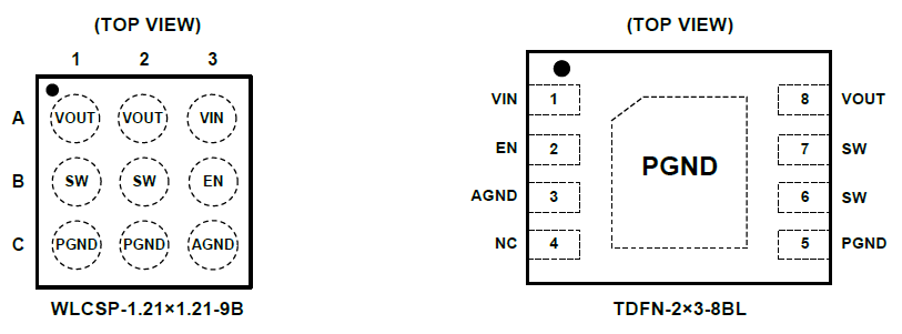 - Available in Green WLCSP-1.21×1.21-9B and TDFN-2×3-8BL Packages