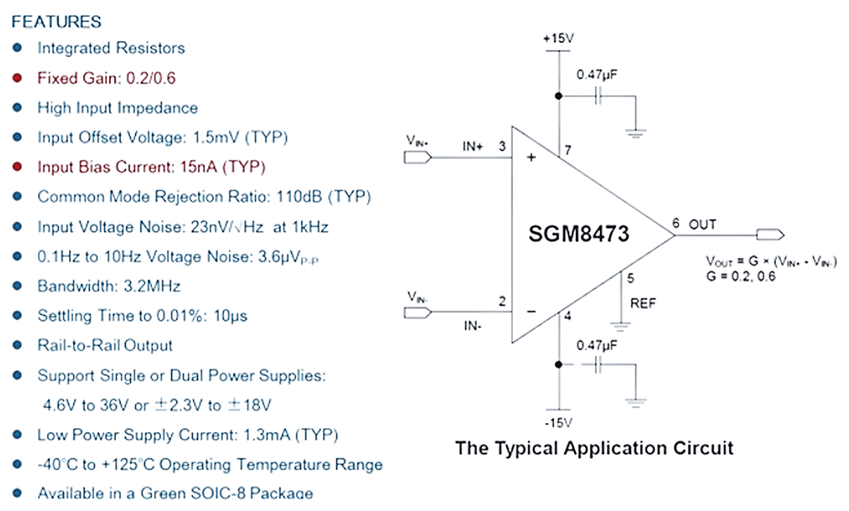 b. SGM8473 高輸入阻抗、低功耗、低噪聲衰減型差分放大器