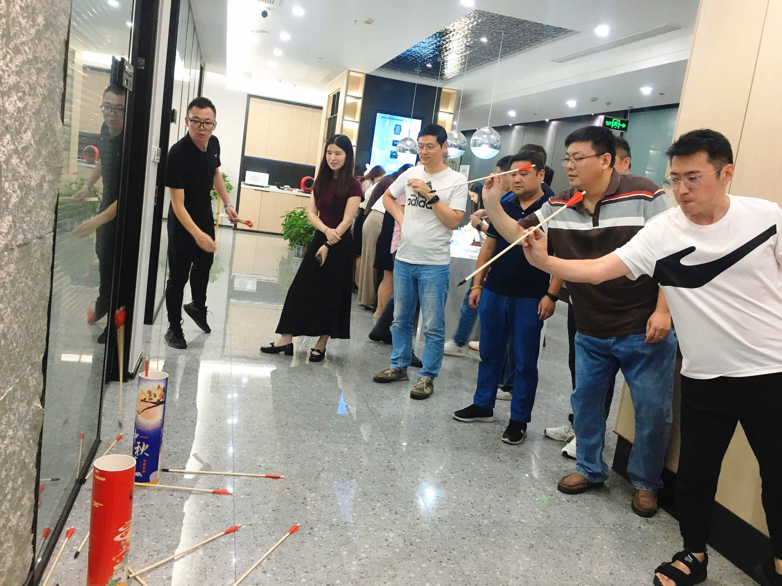 ?? 為慶祝中秋和國慶雙節(jié),行政人事部精心布置了會議室做為本次活動的主場館,長長的會議桌上放滿了月餅、美食、水果和飲料……營造出濃濃的節(jié)日氣氛。同時,在前臺大廳區(qū)域組織了“投壺換年假”、“組裝小燈籠”、“親手做月餅”等系列趣味性活動。
